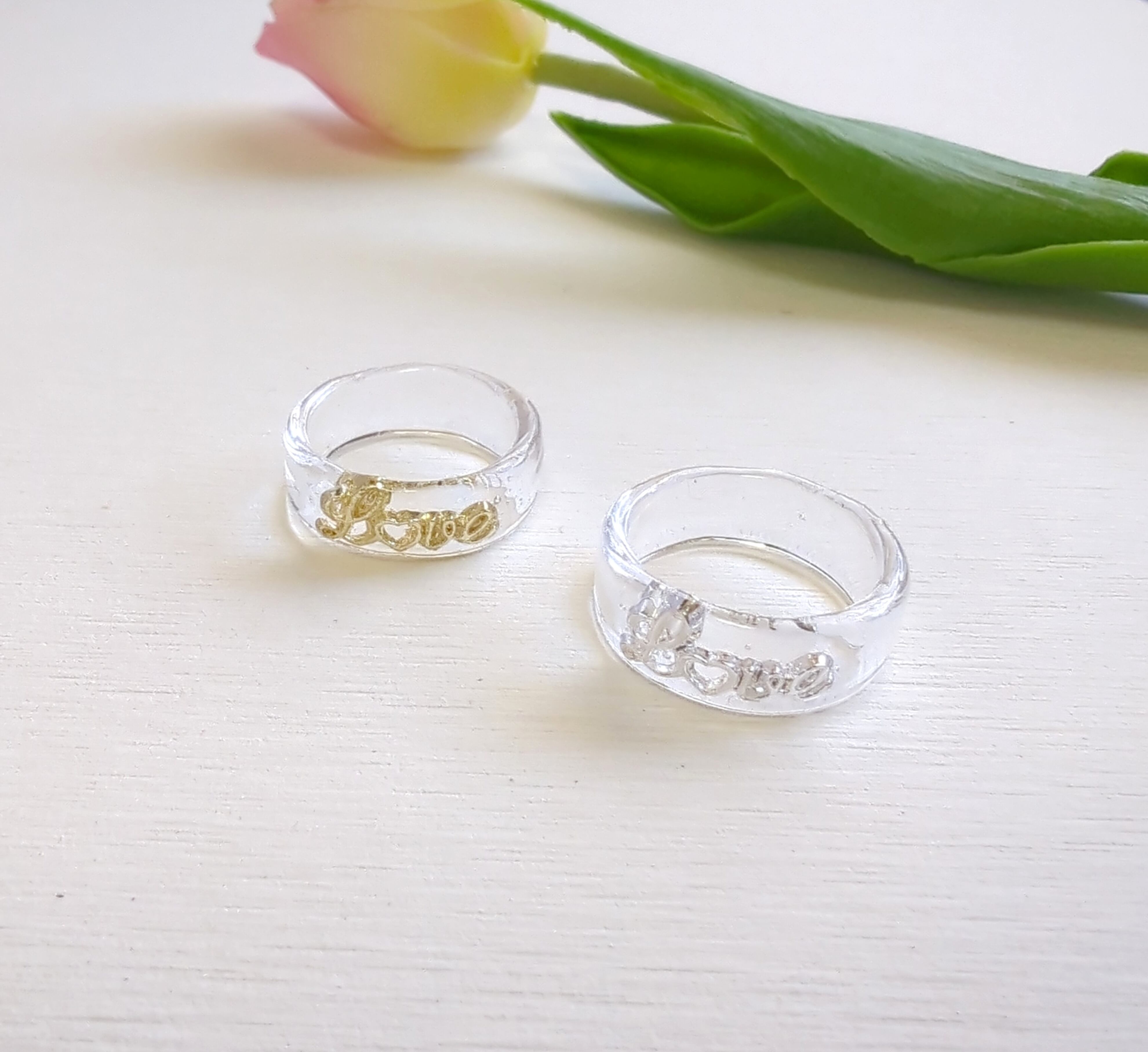 とってもかわいいゴールドとシルバーのloveリングが出来上がりました!